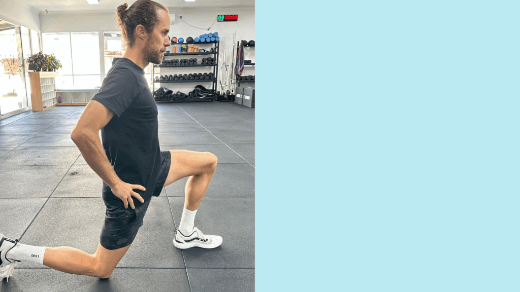 • Gently shift your hips forward until you feel a stretch through the front of your back leg/hip.